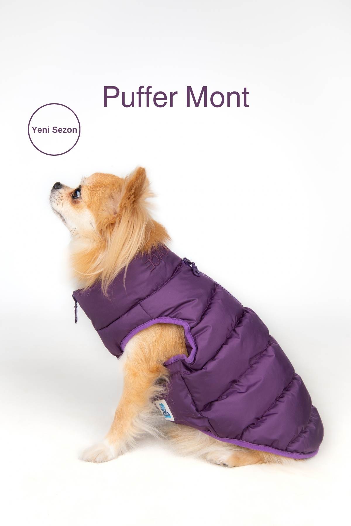 Köpek Mont, Küçük ve orta ırk köpek yağmrluğu, Puffer köpek montu mor